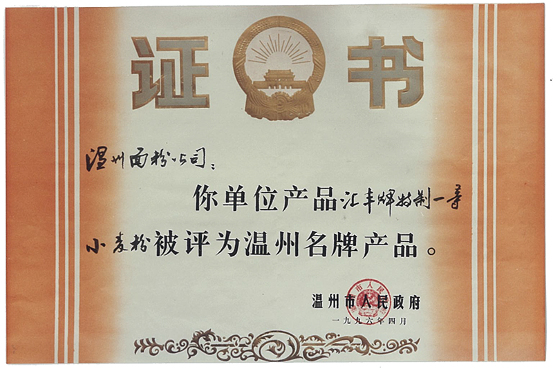 上個(gè)世紀(jì)公司主要經(jīng)營糧食生產(chǎn),在品牌產(chǎn)品領(lǐng)域開發(fā)“匯豐牌”面粉、“甌橋牌”面包、方便面等,斬獲消費(fèi)市場喜愛,其中“匯豐牌”特制一等粉獲得商務(wù)部優(yōu)質(zhì)產(chǎn)品認(rèn)證,榮膺溫州市最佳產(chǎn)品、溫州市系統(tǒng)品牌產(chǎn)品稱號,其歐潮牌又獲得最佳溫州貨、最佳產(chǎn)品(兒童食品、面包類)榮譽(yù)稱號。